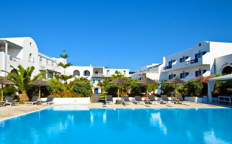 该酒店拥有独特的位置,可以享受世界级旅游天堂圣托里尼岛的美景。目前酒店设施包含一个大泳池、7 个小泳池,还有可容纳 100 人就餐的餐厅。盈利状况良好,金融类股的走势逐年好转。该酒店曾承接过许多婚礼和休闲聚会,在圣托里尼的婚宴和旅游市场上抢占了有很大份额。