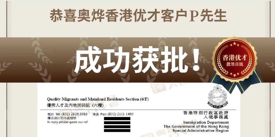 恭喜奥烨客户A女士 香港新投资者入境计划 成功获批 申请历程: 2024年4月:递交投资推广署; 2024年6月28日:通过淨資產規定...
