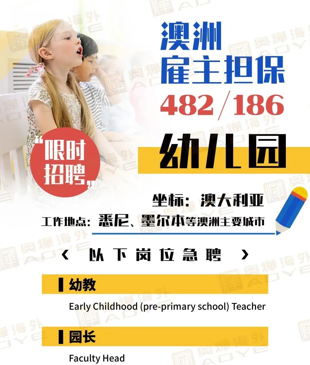 本期推文,小烨来给大家介绍一下,幼教老师Early Childhood Teacher,如何快速移民澳洲?