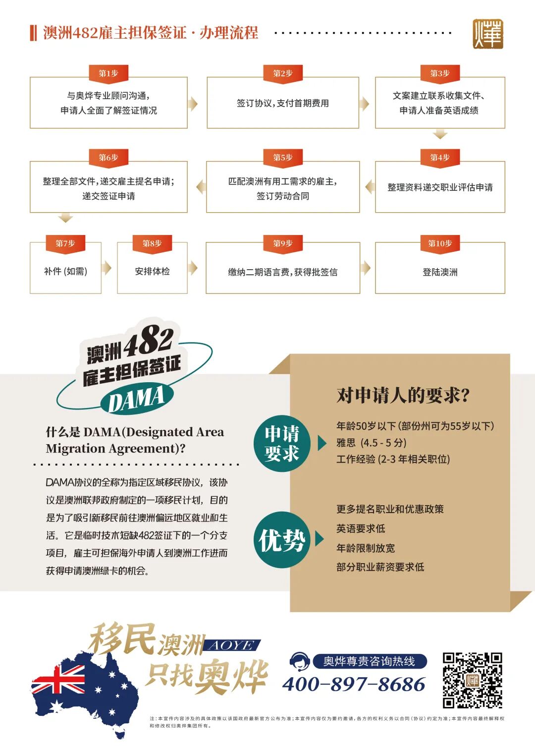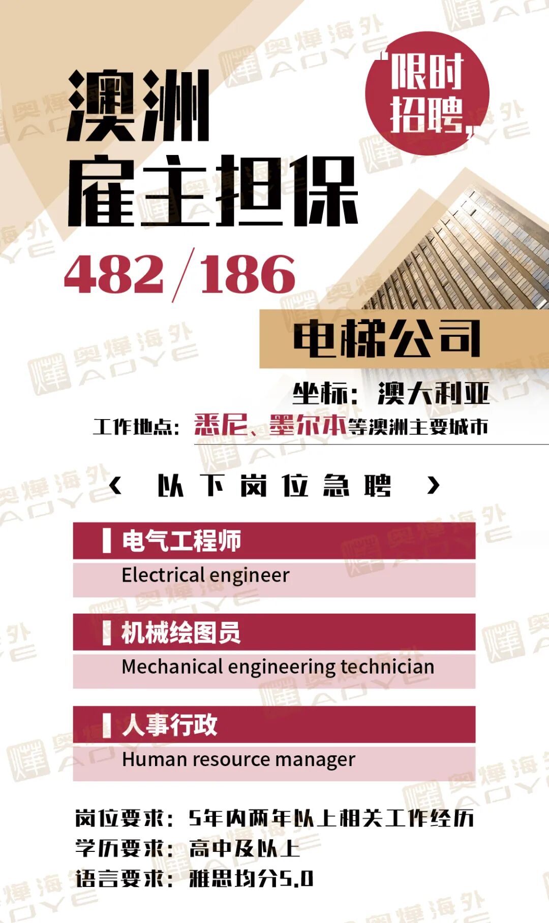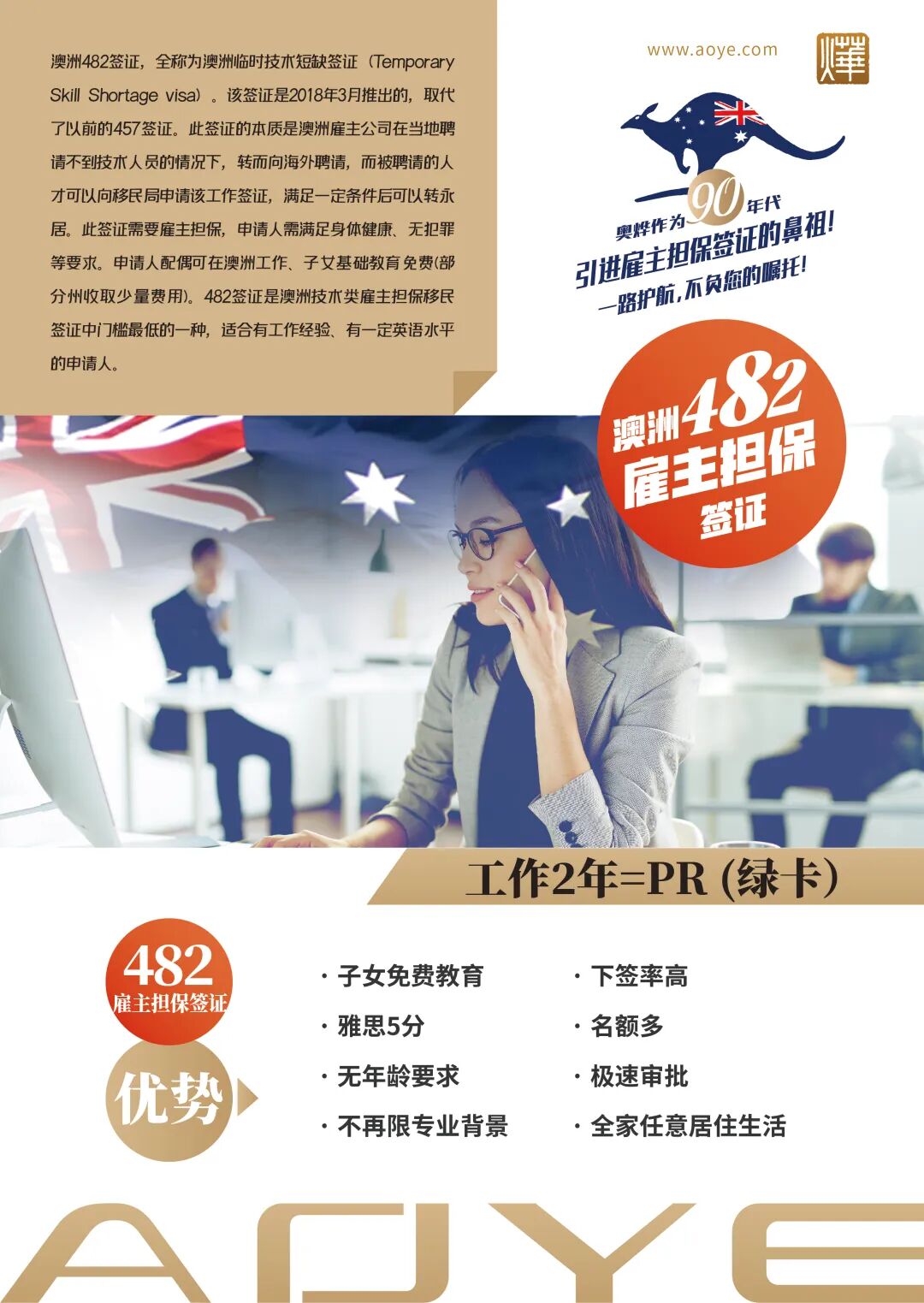 奥烨作为90年代,引进雇主担保签证的鼻祖!奥烨董事长李敏女士,每次回澳都有不少企业家(雇主)找敏姐帮忙,说他们的公司如何如何缺人。