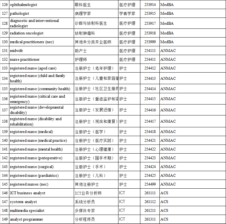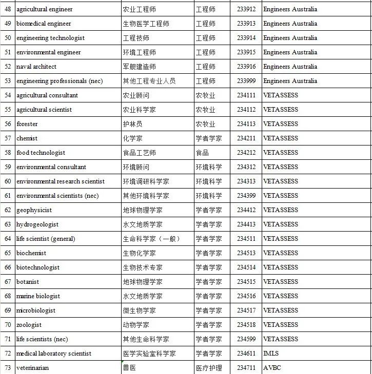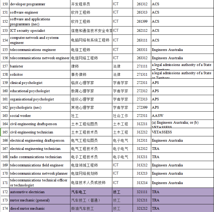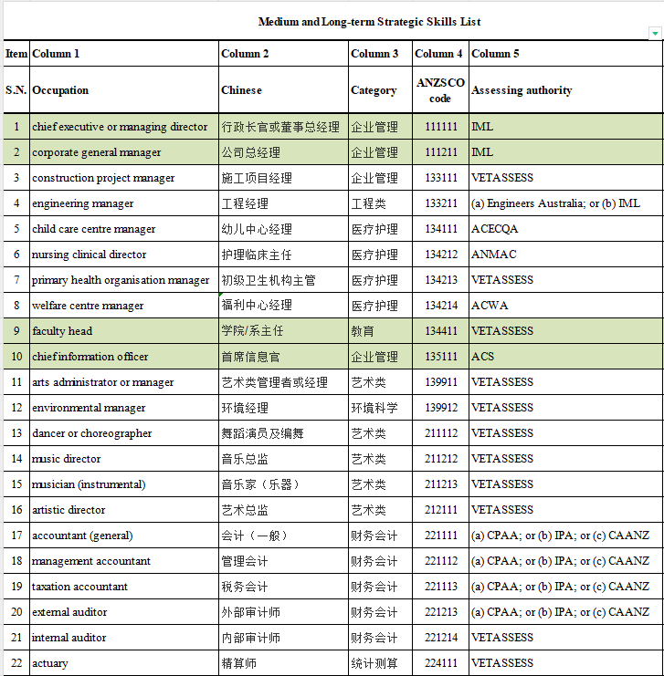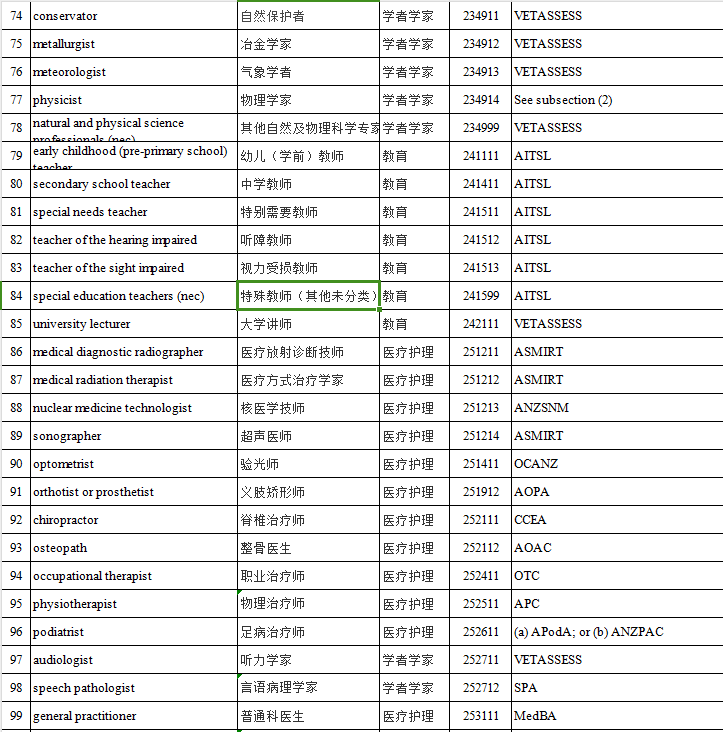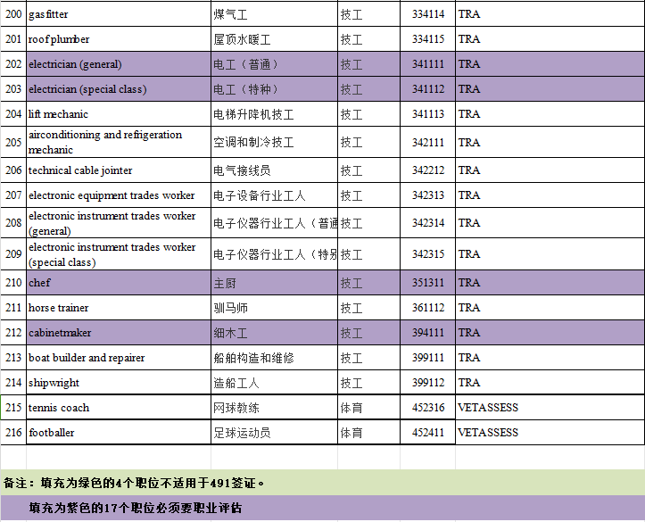 其中,中长期MLTSSL表职业清单可以申请的签证有: