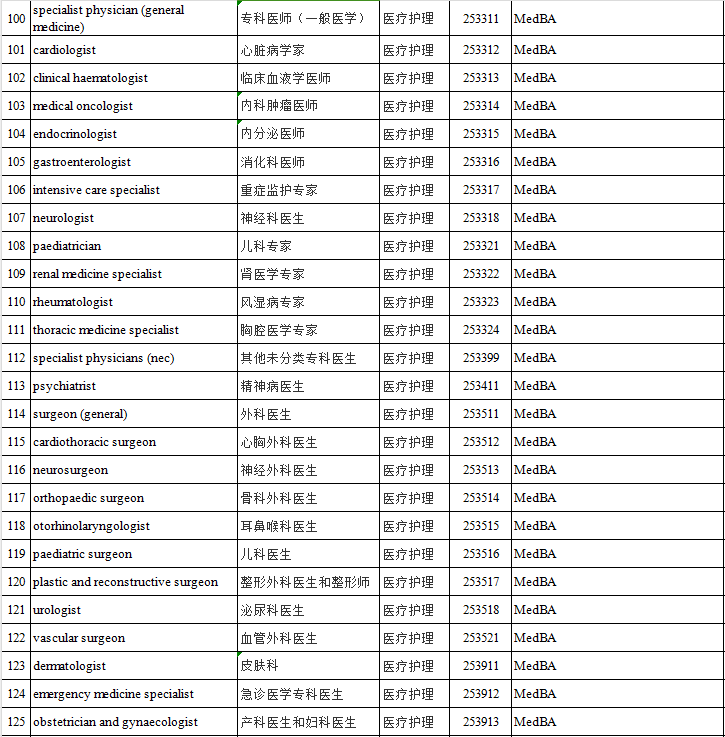 1、职业清单:适用于中长期职业列表(MLTSSL)上的职位;