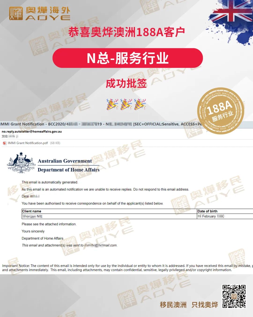 【奥烨捷报】祝贺澳洲188A客户服务行业N总,喜获批签