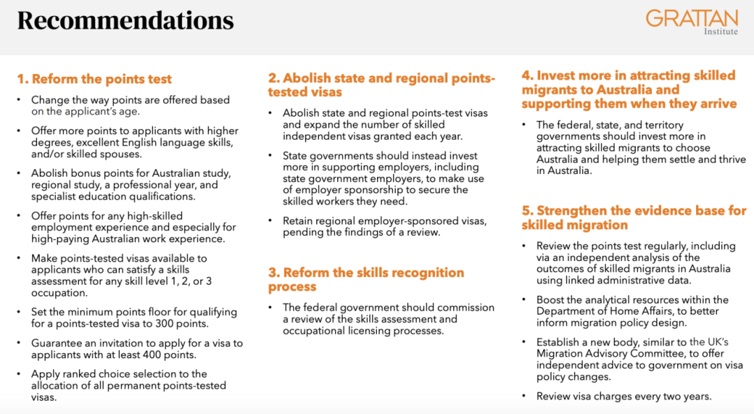 作为澳洲政府官方的主要建议方,每年格拉坦智库(Grattan Institute)都会给出当年的移民政策方向和细则。