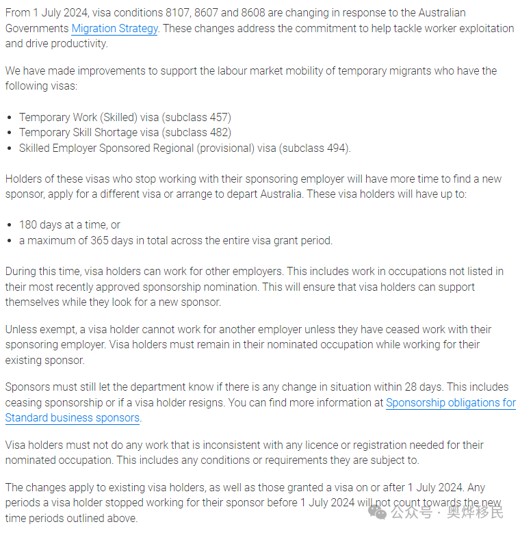 7月起,更换雇主有效期延长至180天,或整个签证有效期内共365天 ,使签证持有人拥有更多时间寻找新的雇主担保。