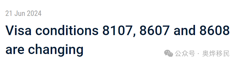 澳洲移民部将对签证附加条款8107,8607与8608实施改变。