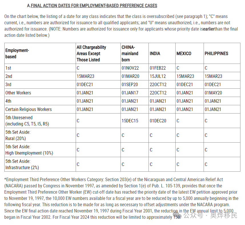 根据美国国务院发布的8月签证公告中,可以很清晰的看见:新法案下的EB-5预留类别赢麻了,继续“无排期”,其他职业移民全面停滞。