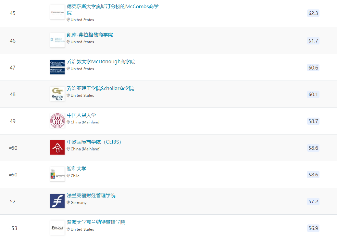 同时,英国商学院亦表现不俗,共有28所商学院跻身榜单,其中两所强势进入全球前十名。中国内地的商学也在此次排名中有所突破,共有10所商学院成功入围。