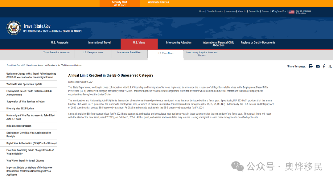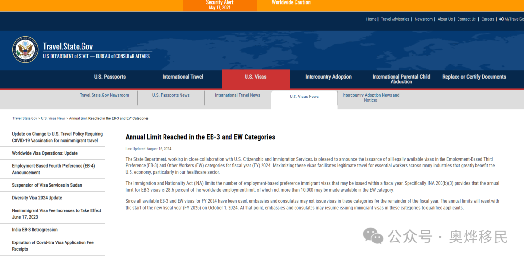 2024财年,EB-5非预留签证配额已发完,同时EB3签证也是如此。
