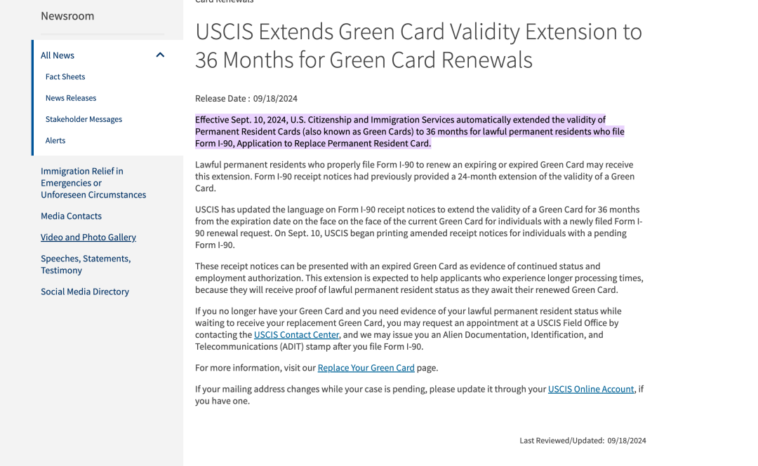 重磅好消息!美国移民新规:绿卡有效期更新将自动延长至3年!解决等待难题