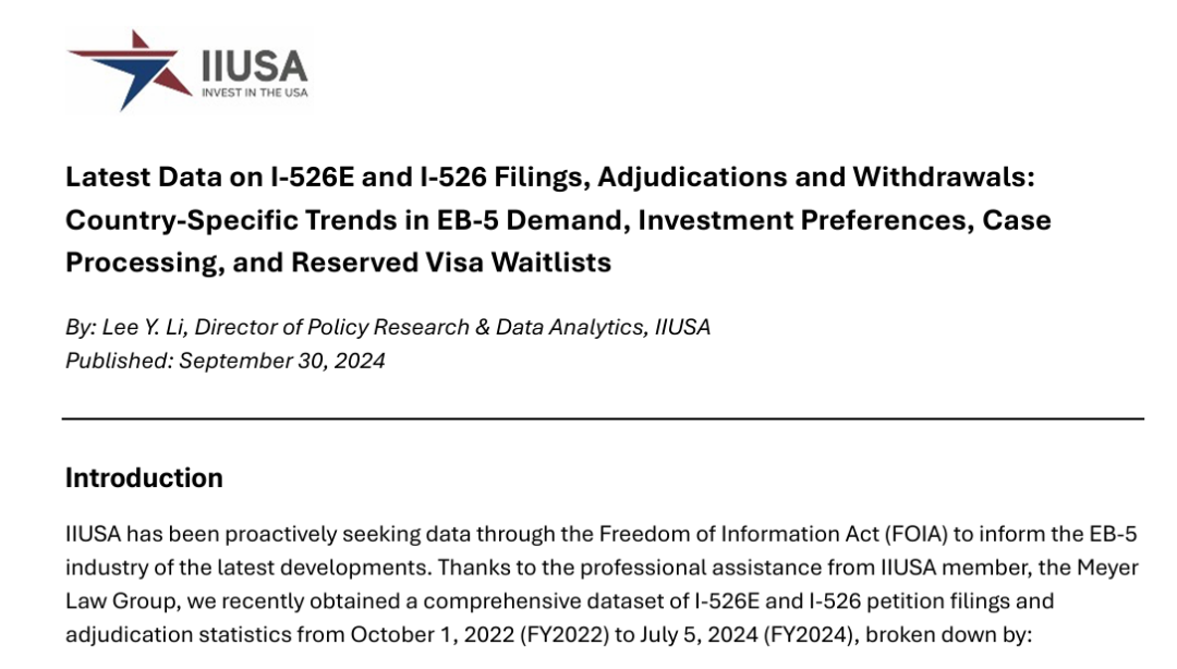 近日,美国投资移民行业协会(IIUSA)依据公开信息发布了一份EB-5新政数据报告,包含从2022-2024年7月5日的EB-5递交及获批情况: