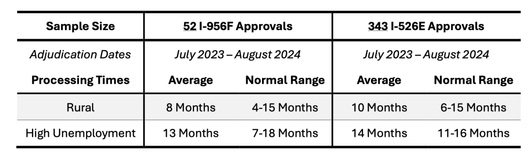 乡村类项目I-526E申请一般获批时间在6-15个月,平均10个月内获得批准;
