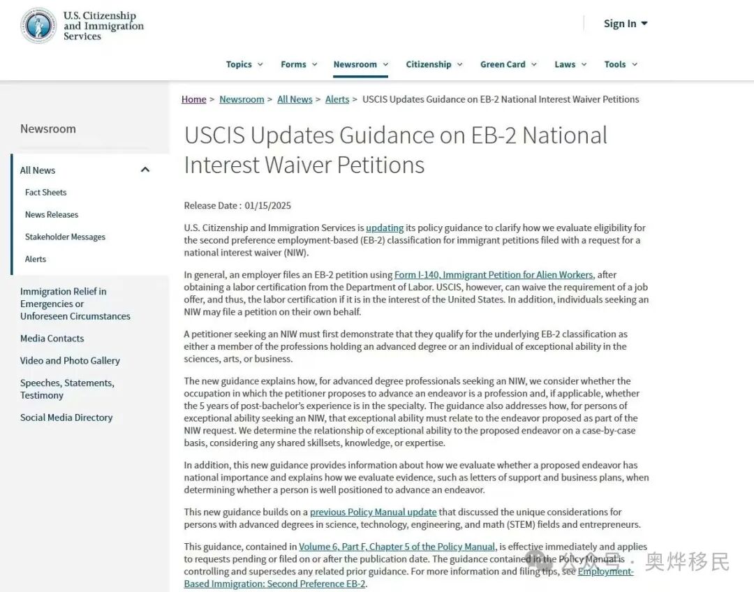 🇺🇸通知:美国移民局于2025年1月15日对NIW政策做出重大调整与补充,立即生效,具体调整如下: