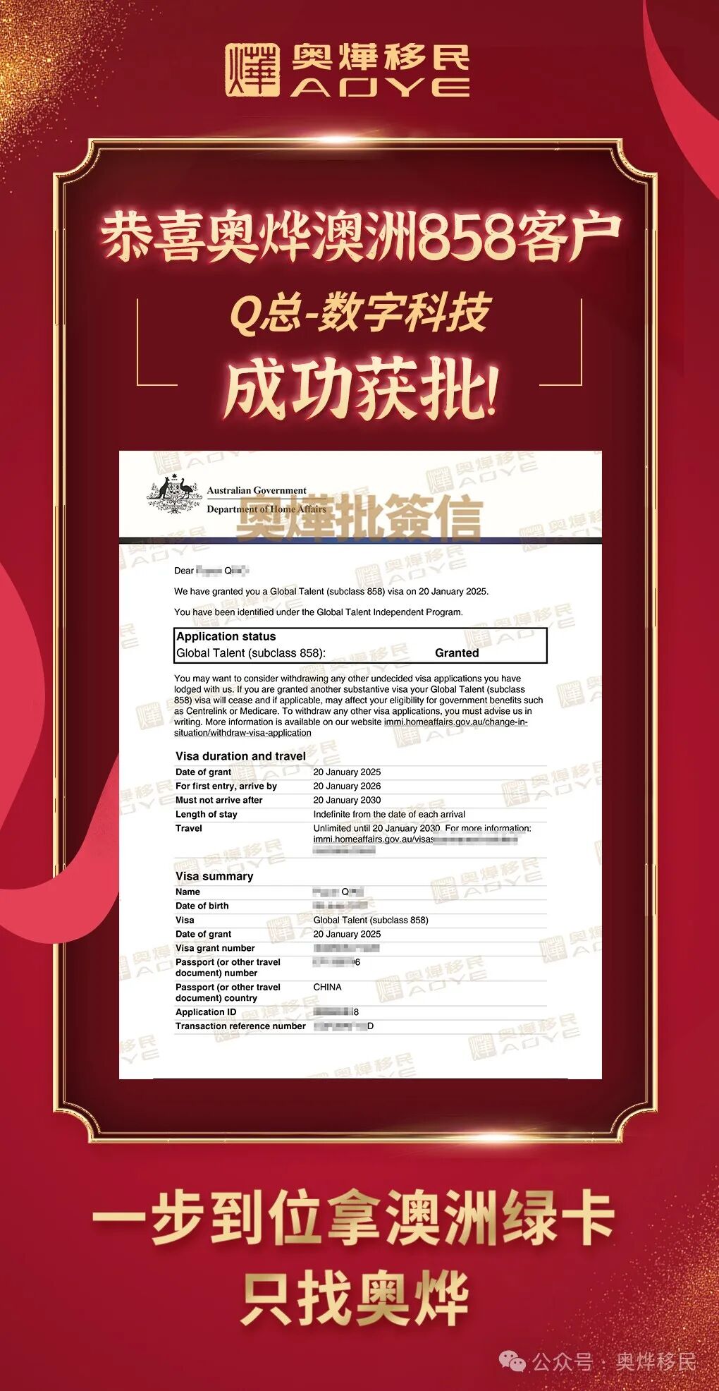 【成功案例】澳洲858再创佳绩,数字科技行业Q总成功获批签!奥烨让您和家人移路无忧