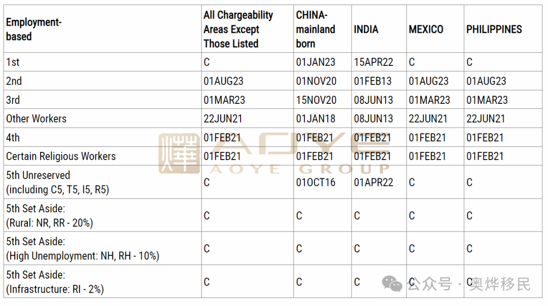 EB-5预留类别(乡村,高失业率地区以及基建项目):无排期。