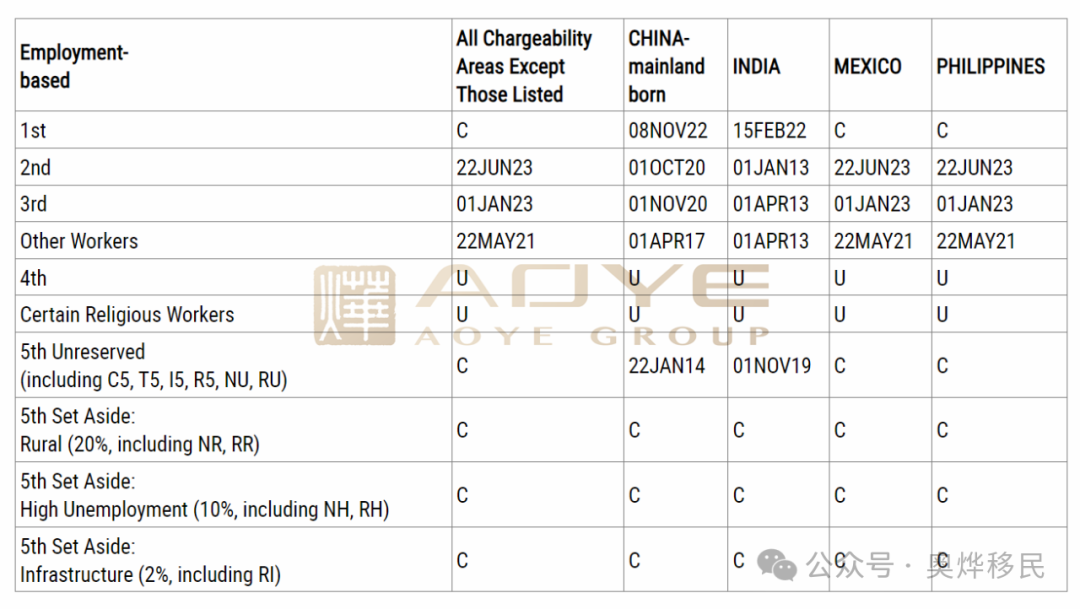 EB-5预留类别:(乡村,高失业率地区以及基建项目):无排期。