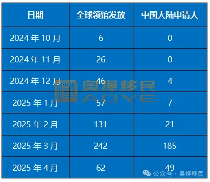 其中,中国申请人仅获6张签证,占比从上月15%骤降至1.3%。