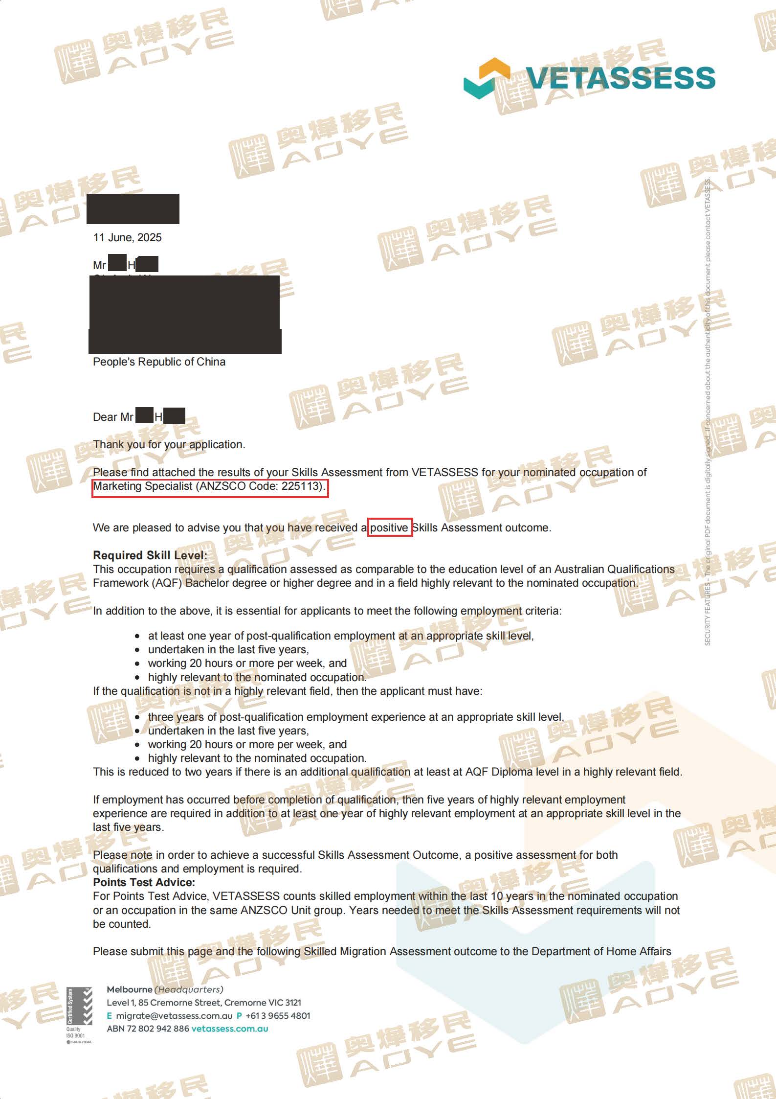 2. H先生,提名职位:市场专员,5月9日递交学历认证;5月28日递交职业评估;6月11日同天完成学历认证并通过职业评估;