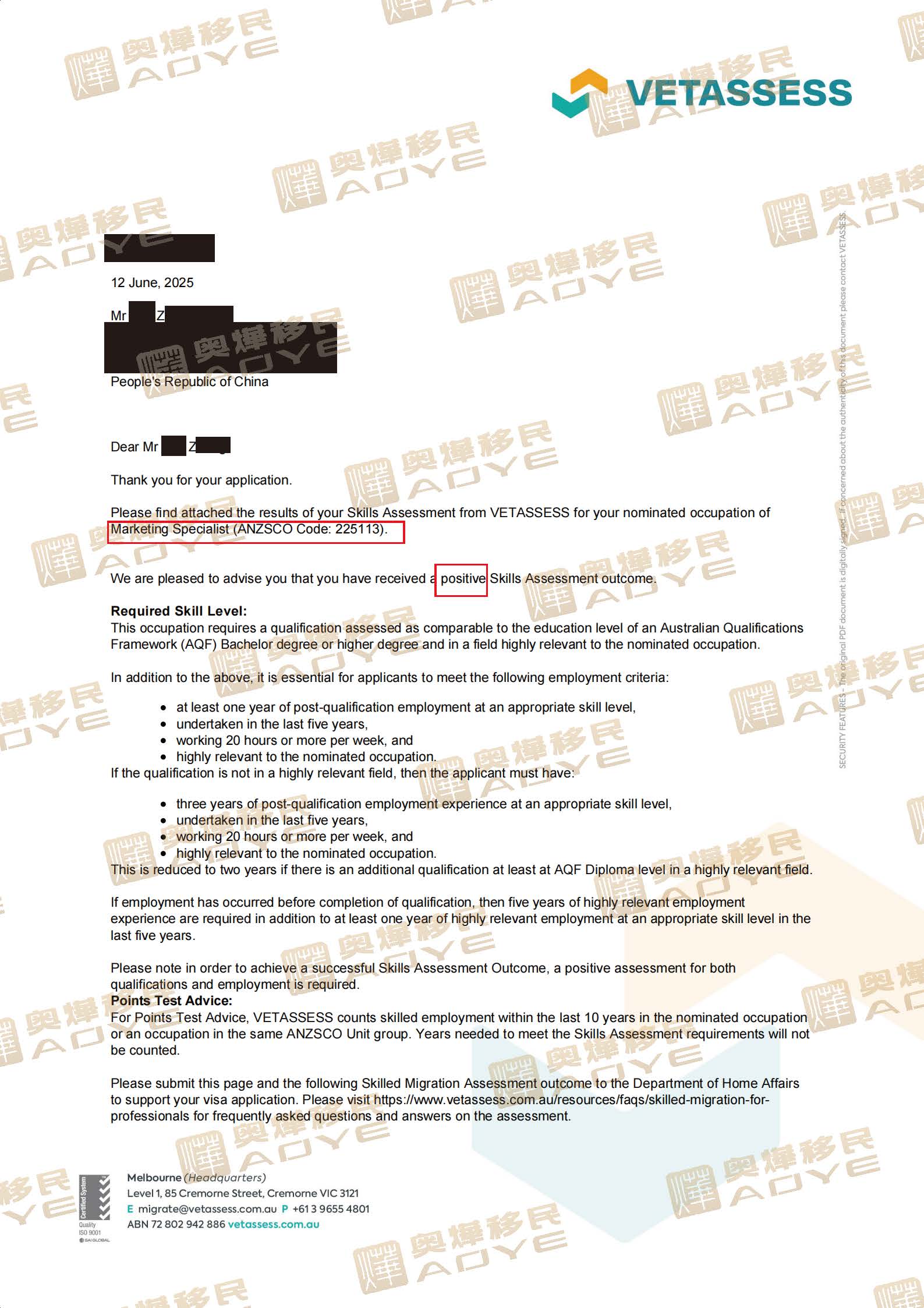 申请流程:2025年4月25日递交学历认证;6月9日递交职业评估;6月12日同天完成学历认证及通过职业评估。