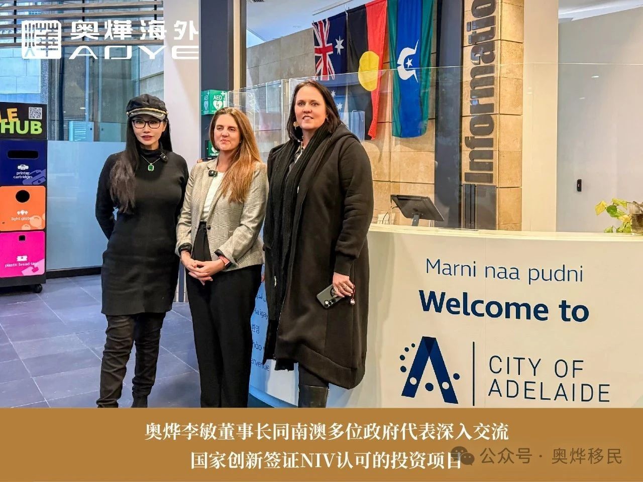 近日,奥烨集团董事长李敏携手悉尼团队奔赴澳大利亚南澳州,展开了一系列与当地政府代表的深入交流活动,旨在为奥烨VIP客户提供更清晰、高效且稳妥的移民路径,彰显了奥烨在移民服务领域的前沿地位与专业实力。