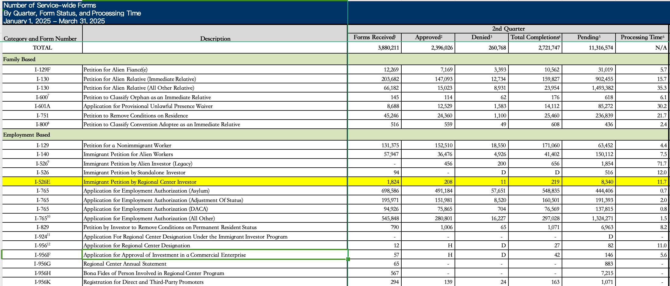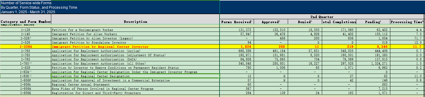 【奥烨移民】美国移民局发布2025财年Q2职业移民数据:EB-5新政申请量创历史新高!