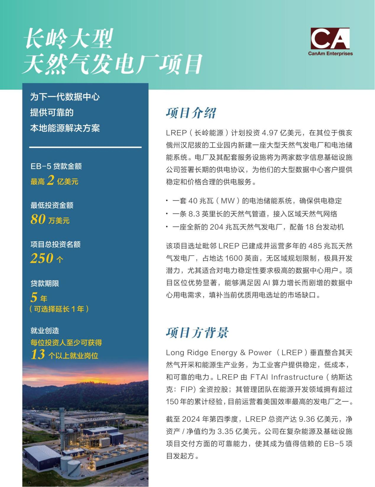 长岭能源大型天然发电厂:该项目是俄亥俄州战略级能源项目。项目管理方CanAm在EB-5领域拥有超过20年的经验,是全球第一大EB-5还款项目运营方,EB-5历史还款额已达25亿。CanAm将提供EB-5高级贷款投资,保证稳定可靠的长期收入来源,此外还有EB-5第一抵押权+上市公司购电协议+三重担保+低杠杆资金结构,风险控制与收益稳定性领先业内。值得一提的是,CanAm还提供专属APP供投资者实时追踪项目进展,管理透明、贴心。近期长岭能源发电厂项目备受关注,预计4个月内售罄;