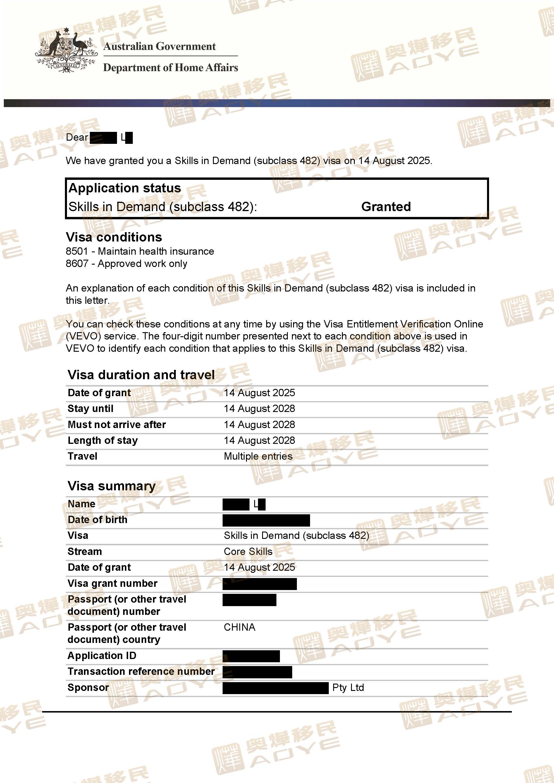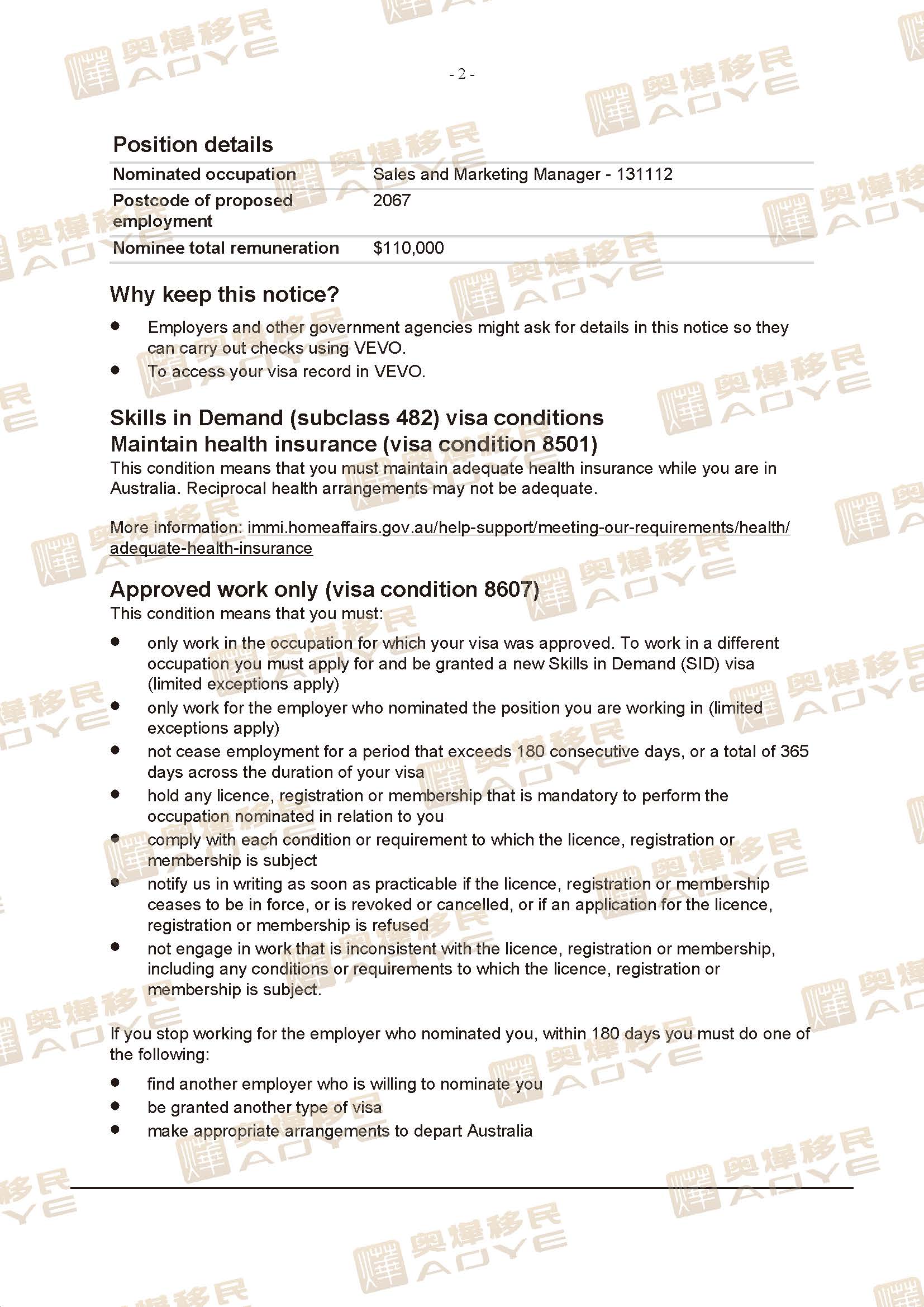 喜讯:L先生SID签证获批!提名职位Sales and Marketing Manager(销售及营销经理)