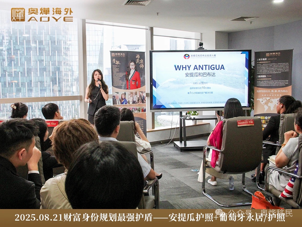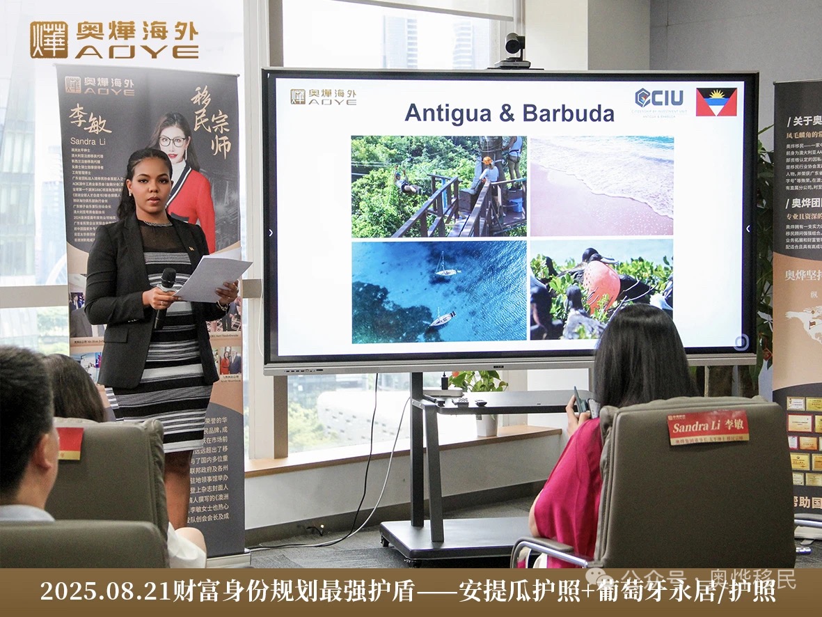 8月21日,奥烨集团在广州高德置地广场举办“财富身份规划最强护盾——安提瓜&葡萄牙双项目”主题分享会,安提瓜和巴布达驻中国大使馆商务参赞OIga Lidia Tittle Diaz,全球移民宗师、奥烨集团董事长李敏,资深移民规划专家——Lin 女士悉数到场,围绕安提瓜财税规划最优解和葡萄牙文化投资新机遇的话题进行了深度剖析和专业分享,助力客户把握全球身份配置黄金机遇。