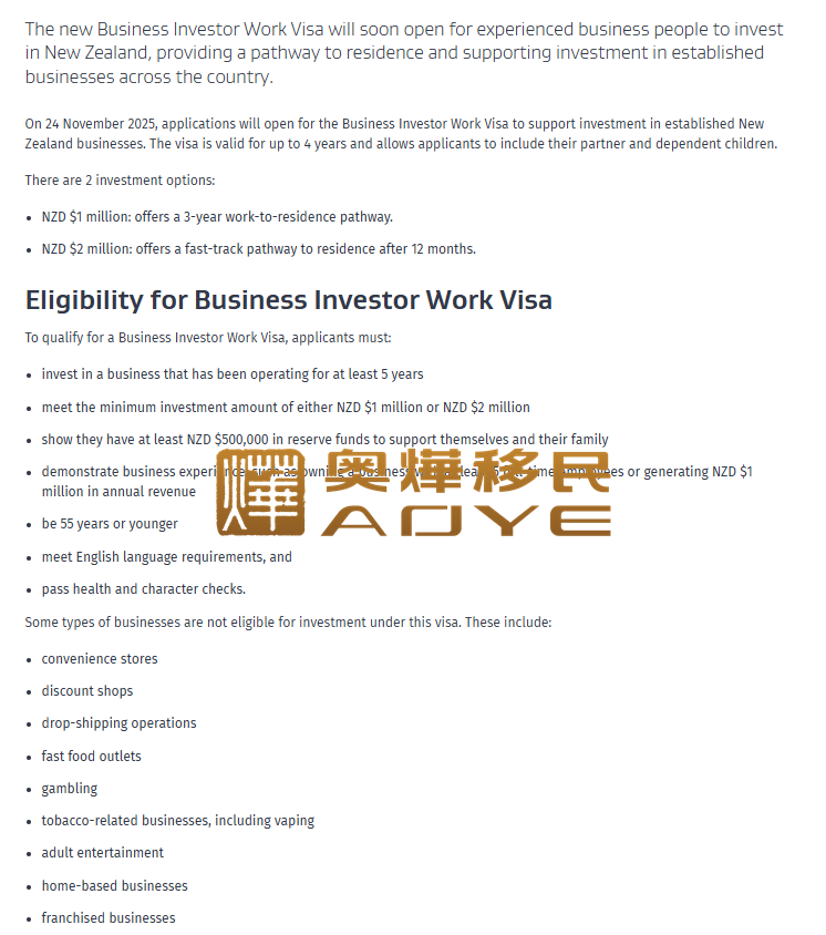 新西兰商业投资签证细则公布:100万纽币起投,11月24日开放申请,最快一年拿居留_奥烨移民