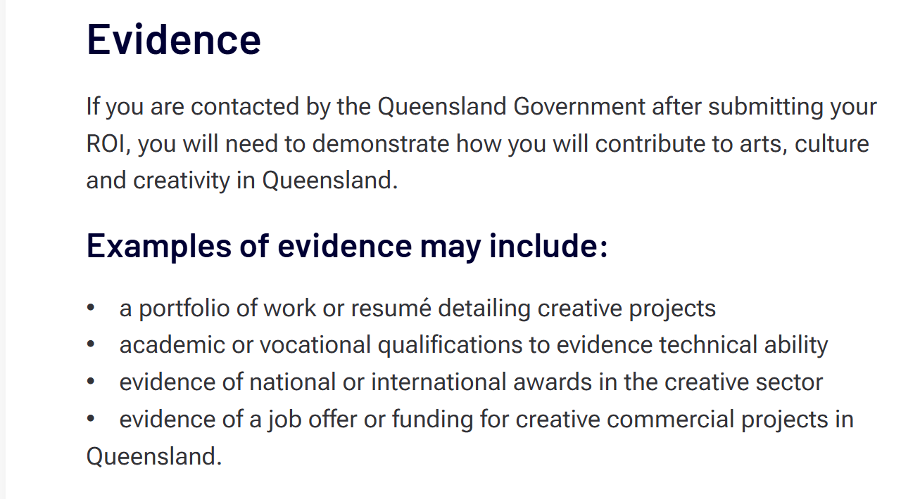 如果您在提交ROI后被昆士兰州政府联系,您需要说明将如何为昆州的艺术、文化和创意事业做出贡献。