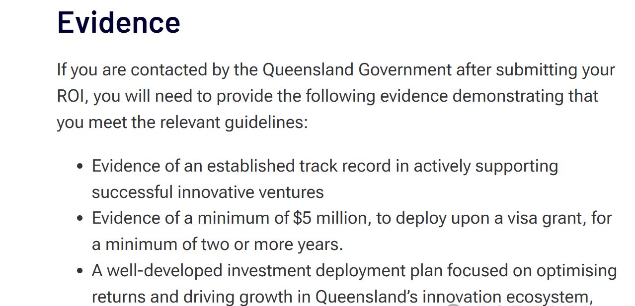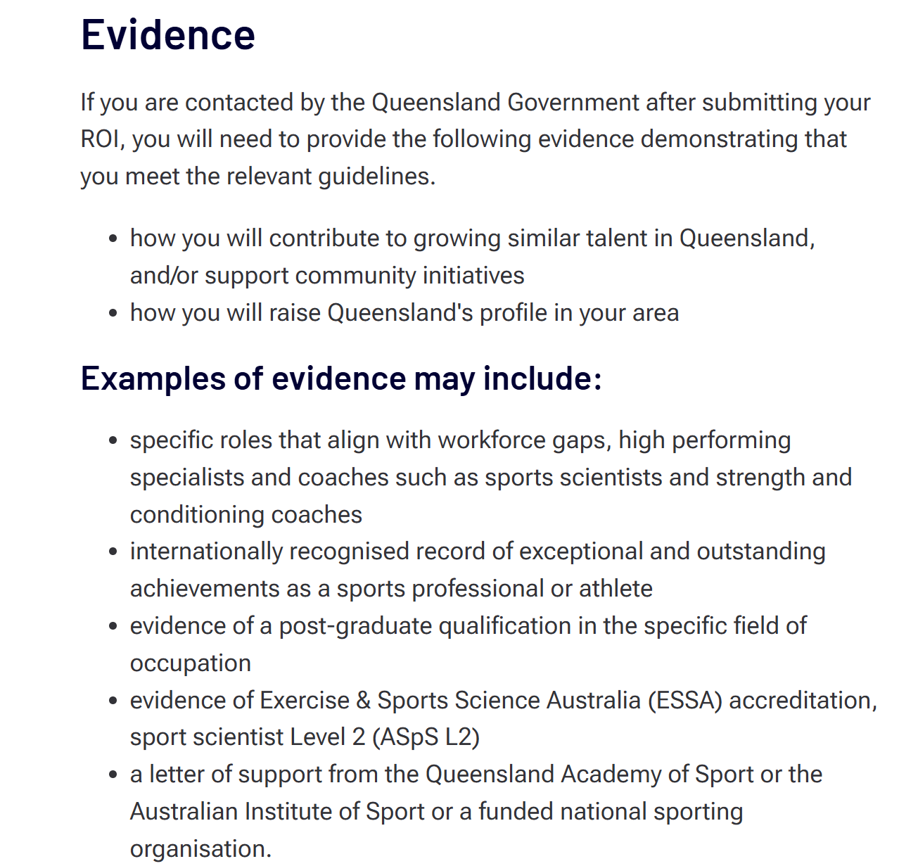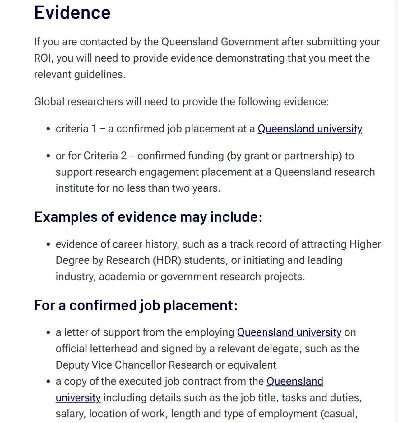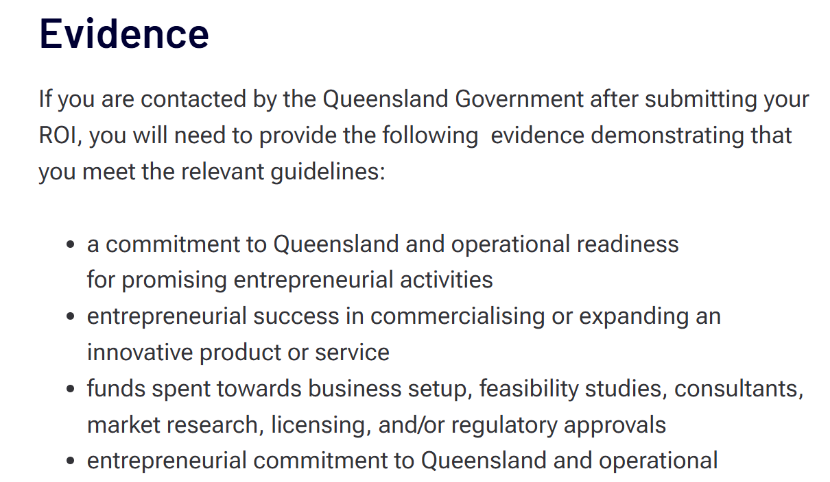 如果您在提交ROI后被昆士兰州政府联系,您需要提供以下证据以证明您符合相关指南。