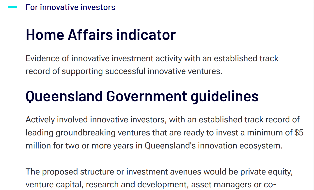 拥有成功引领突破性创业项目的良好记录,并准备在昆州的创新生态系统中至少投资500万澳币,投资期限为两年或更长时间。