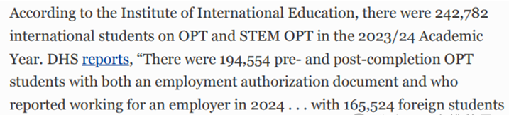 据国际教育协会(IIE)统计:2023-2024学年共有242,782名国际学生参与OPT及STEM OPT项目。