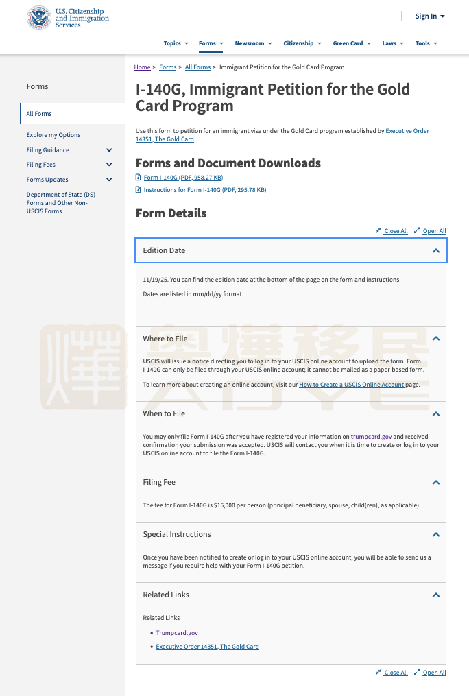 同时,trumpcard.gov 网站也同步开启申请通道,移民局更是迅速发布了I – 140G(Immigrant Petition for the Gold Card Program)申请表格。