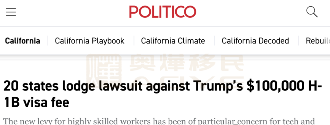 移民美国政策_突发!美国20州联手起诉特朗普政府,10万美金H-1B签证费惹众怒?_奥烨移民