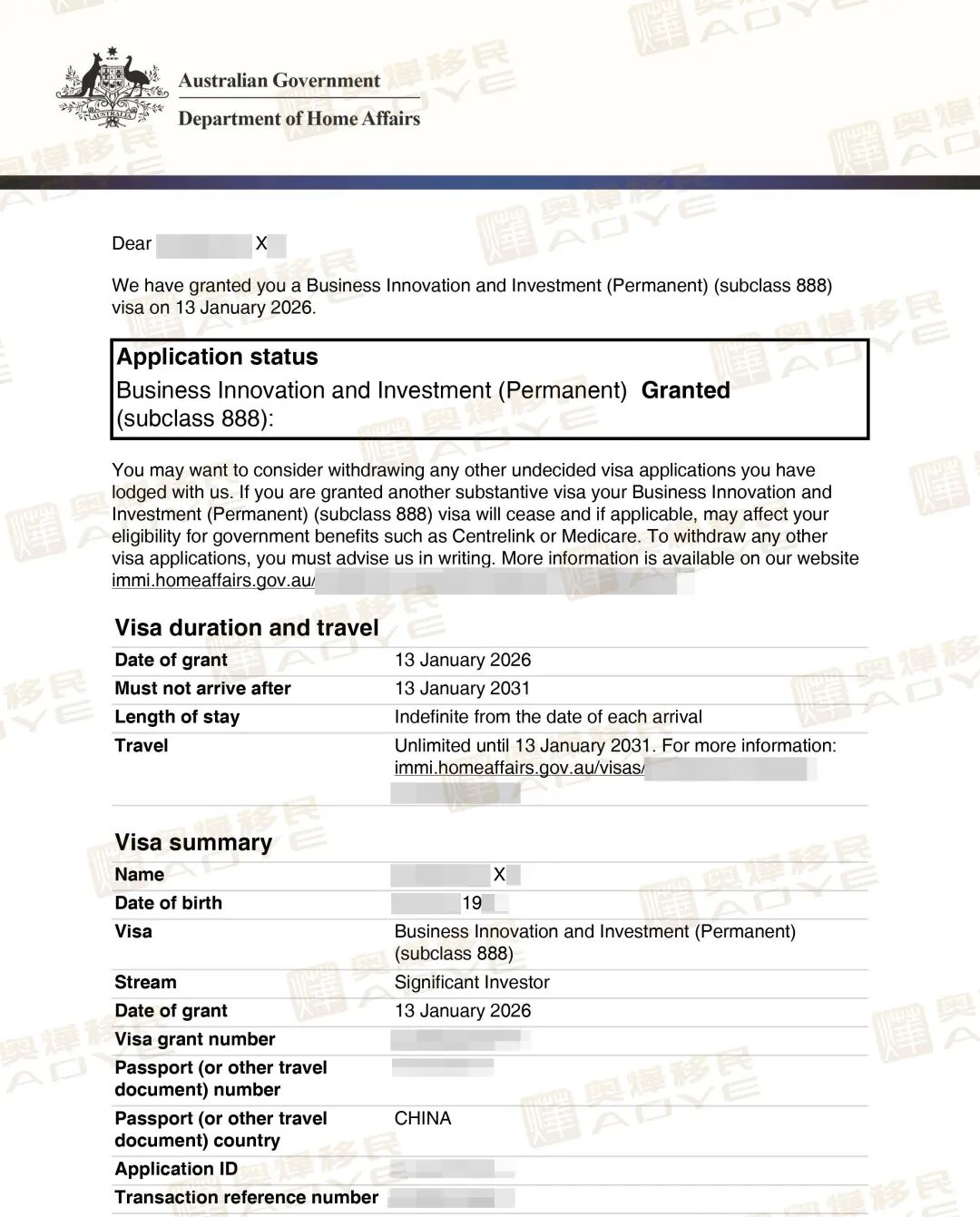 恭喜奥烨澳洲888C客户X总成功获批