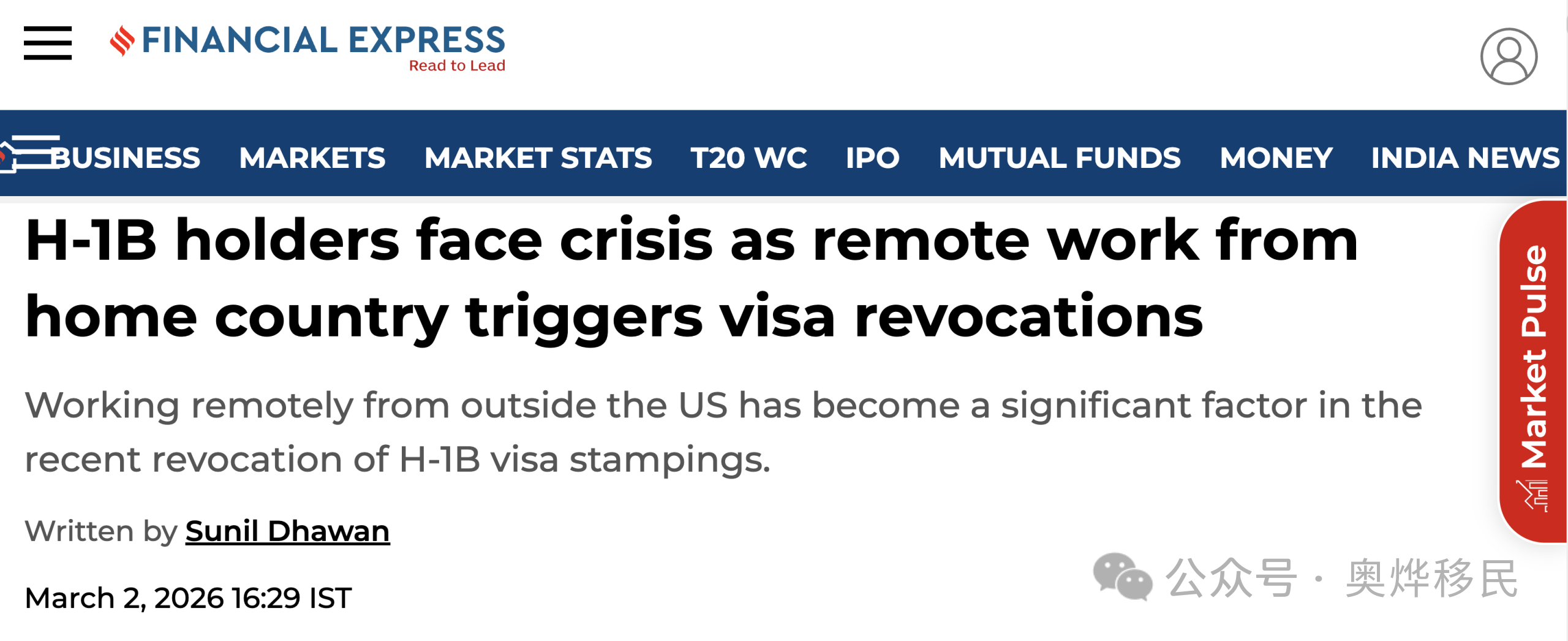 而这一切的导火索,正指向一个看似再普通不过的行为——境外远程办公。据近期 immigration 领域最新动态,“在美国境外远程办公”已成为H-1B签证盖章被撤销的主要原因之一。