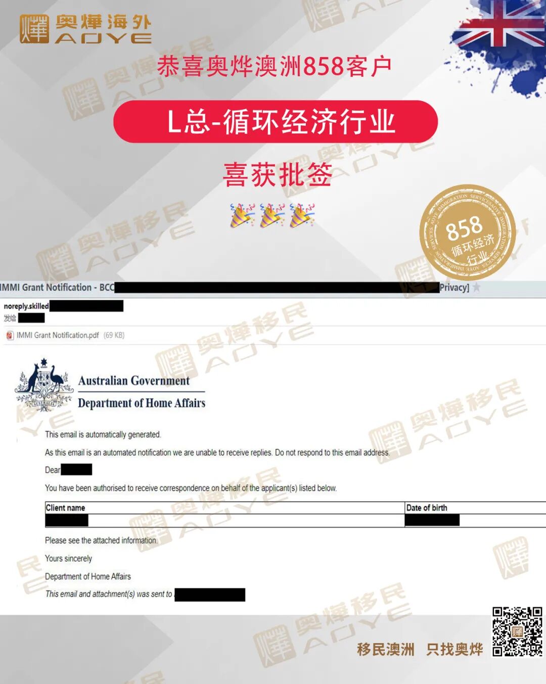【奥烨捷报】祝贺澳洲858客户循环经济行业L总,喜获批签