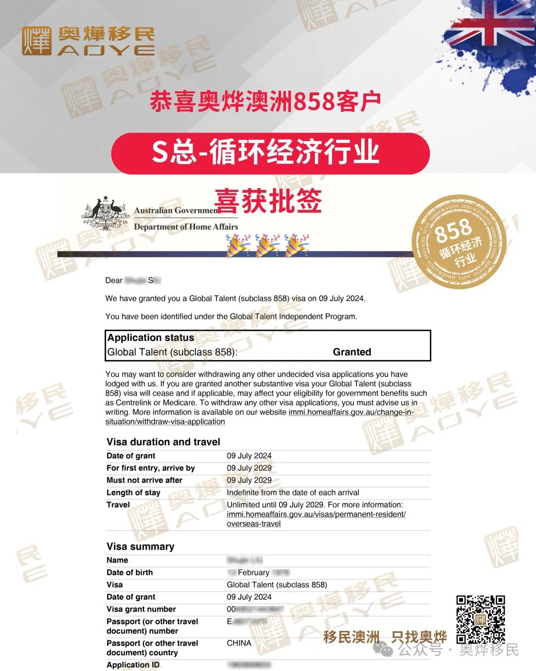 【奥烨捷报】祝贺澳洲858客户循环经济行业S总,喜获批签