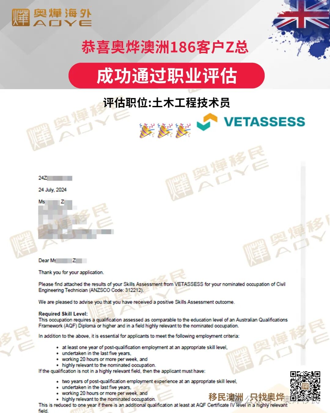 【奥烨捷报】祝贺澳洲186客户Z总,成功通过职业评估