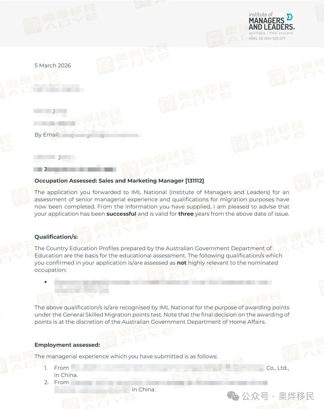 【奥烨捷报】澳洲186客户J总,成功通过销售与市场营销经理职业评估