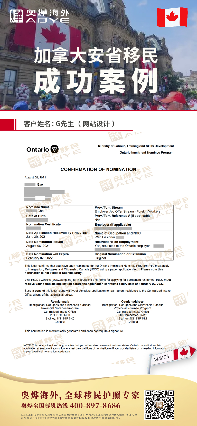 【重磅喜报】:奥烨加拿大安省雇主项目成功案例