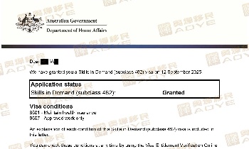 Congratulation!恭喜奥烨澳洲SID 482客户B总成功获批
