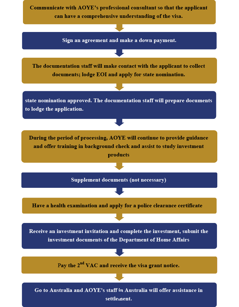 Aftertheinvitationis issuedbytheDeparment of Home Affairs,theapplicantneedstosubmitthevisaapplicationwithin60days. Afterreceivingtheinvestment invitation,theapplicantneedstotransferA$5million to completetheinvestmentwithin28days andproviderelevantevidence of investmentbeforethevisais granted.