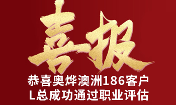 Congratulation! 恭喜奥烨澳洲186客户L总 成功通过职业评估 客户:L总 年龄:27周岁 学历:硕士 国内工作经验:拥有3年以上...