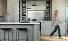 不止这些,细节到冰箱门、橱柜与岛台以及所有开关面板高度,都特别设计与腰线在同一个水平线上,甚至连全宽式浴室储藏柜、850mm超厚的岛台(通常是600厚)斜面防尘的skirt、下沉式水槽,每一个能够便利您生活的细节都贴心照顾。