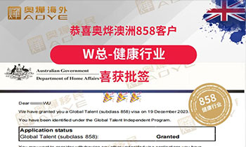 恭喜奥烨澳洲858客户 能源行业K总 成功获批 恭喜奥烨澳洲858客户 高端制造行业F总 喜获人才识别码