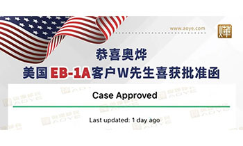 恭喜奥烨美国EB-1A客户 W先生喜获批签 我拿到批准函已经1个多月了,没有找美国当地的律师,直接找的奥烨移民公司。 老实说,...